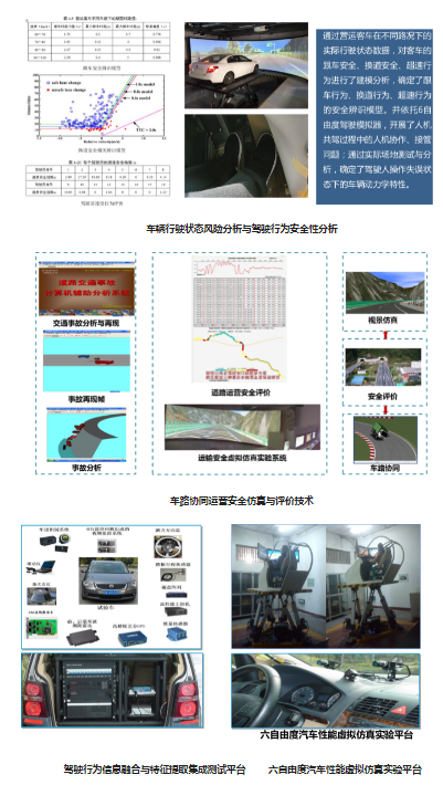 以付锐教授、郭应时教授为科研带头人组建的人车系统安全理论与技术科研团队,在危险行驶状态识别、车辆主动防控性能测试、车辆运行安全性虚拟试验车辆行驶状态风险分析与驾驶行为安全性分析、车路协同运营安全仿真与评价等方面进行了大量的研究。在人车系统安全领域承担国家重点研发计划项目、国家科技支撑计划项目、国家自然科学基金等各类国家级、省部级项目20余项,总科研经费超过近4000万元,团队于2012年获批成为教育部创新团队。